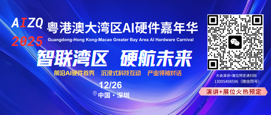 “AIZQ 2025粤港澳大湾区AI硬件嘉年华” 正式定档!2025年12月26日(周五)下午13:00--18:00点,我们将在深圳湾北邮逸扉酒店二楼,与300位行业同仁共赴这场思想与硬件的盛宴。
