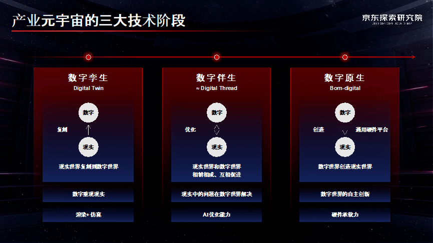 他表示,当下人们更应关注元宇宙的仿真优化能力在实体经济中的巨大价值,而被认为是“元宇宙+产业”的产业元宇宙,作为数字能力引入现实世界、实体经济的接口,不只使用了数字世界重构现实世界中的物理属性和社会属性,更加重视数字世界对现实世界再创造能力的提升。“我们不止强调数字世界的构建,而是更加重视数字世界对现实世界的再创造能力,着力提升人类在现实世界、实体经济中认识和改造世界的能力才是京东针对元宇宙的内涵解读,也就是产业元宇宙的主要内容。”为此,京东推出了元聚力OmniForce开放生态平台。该平台是由京东探索研究院结合基础理论研究以及京东的技术实践,联合合作伙伴一起打造的数智化社会供应链的新一代基础设施。